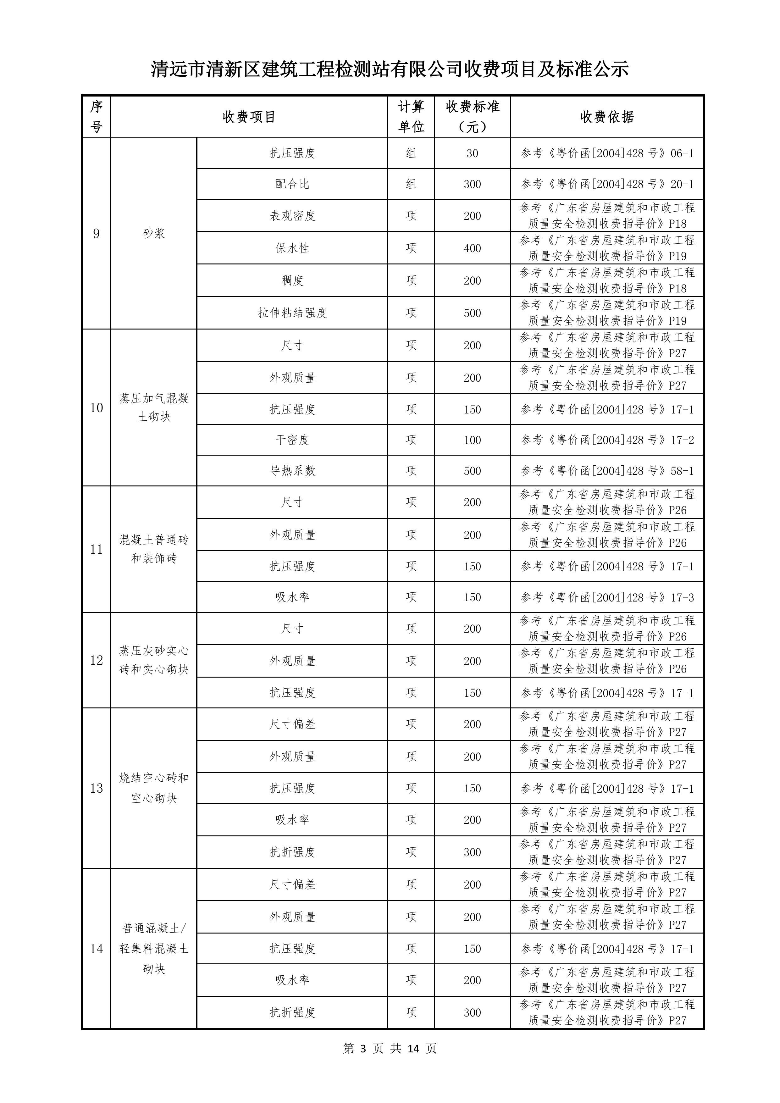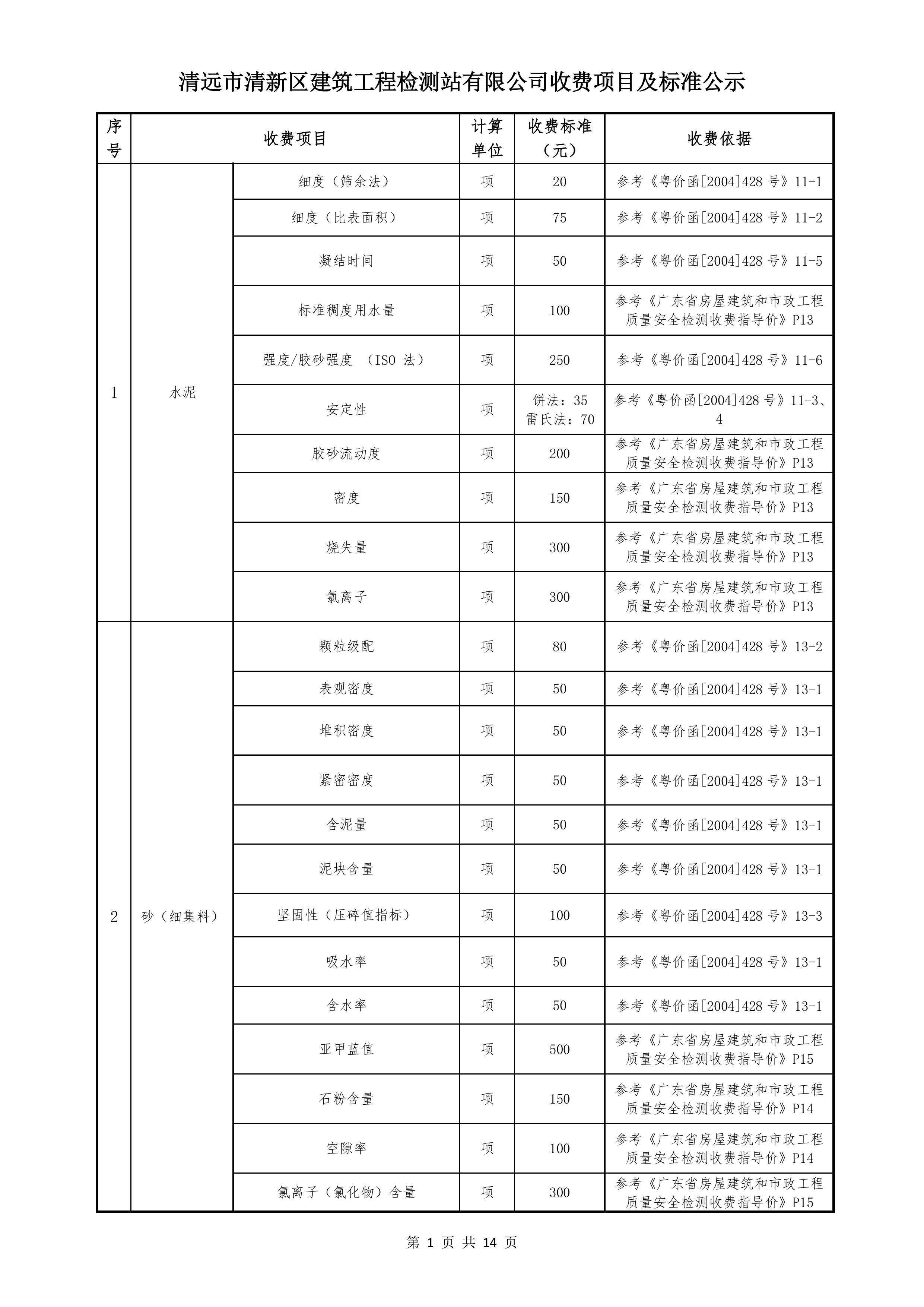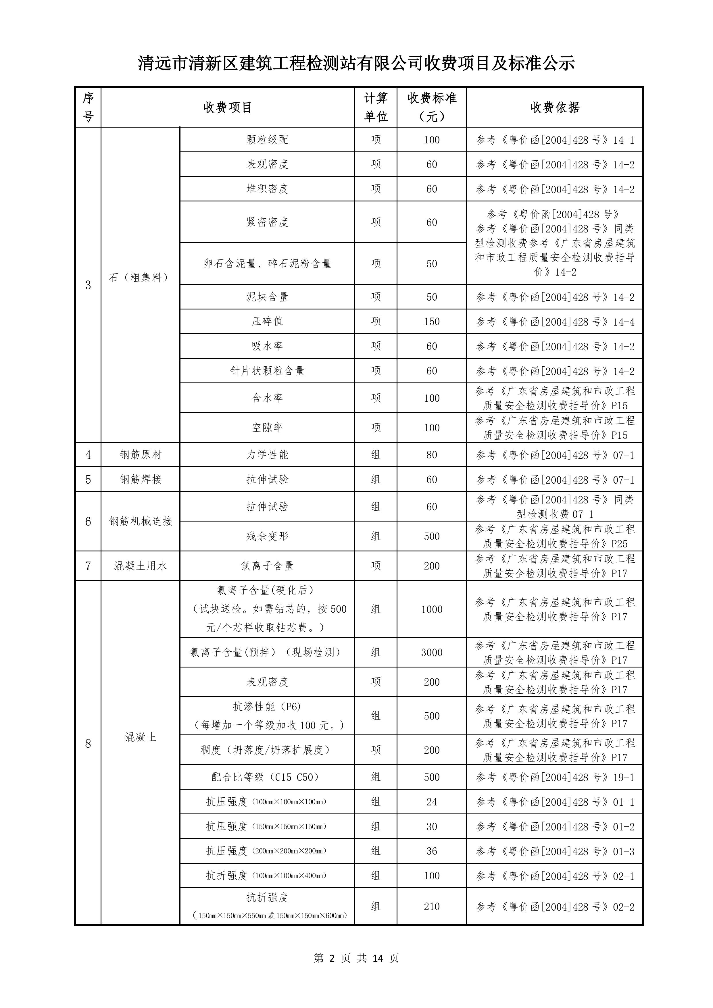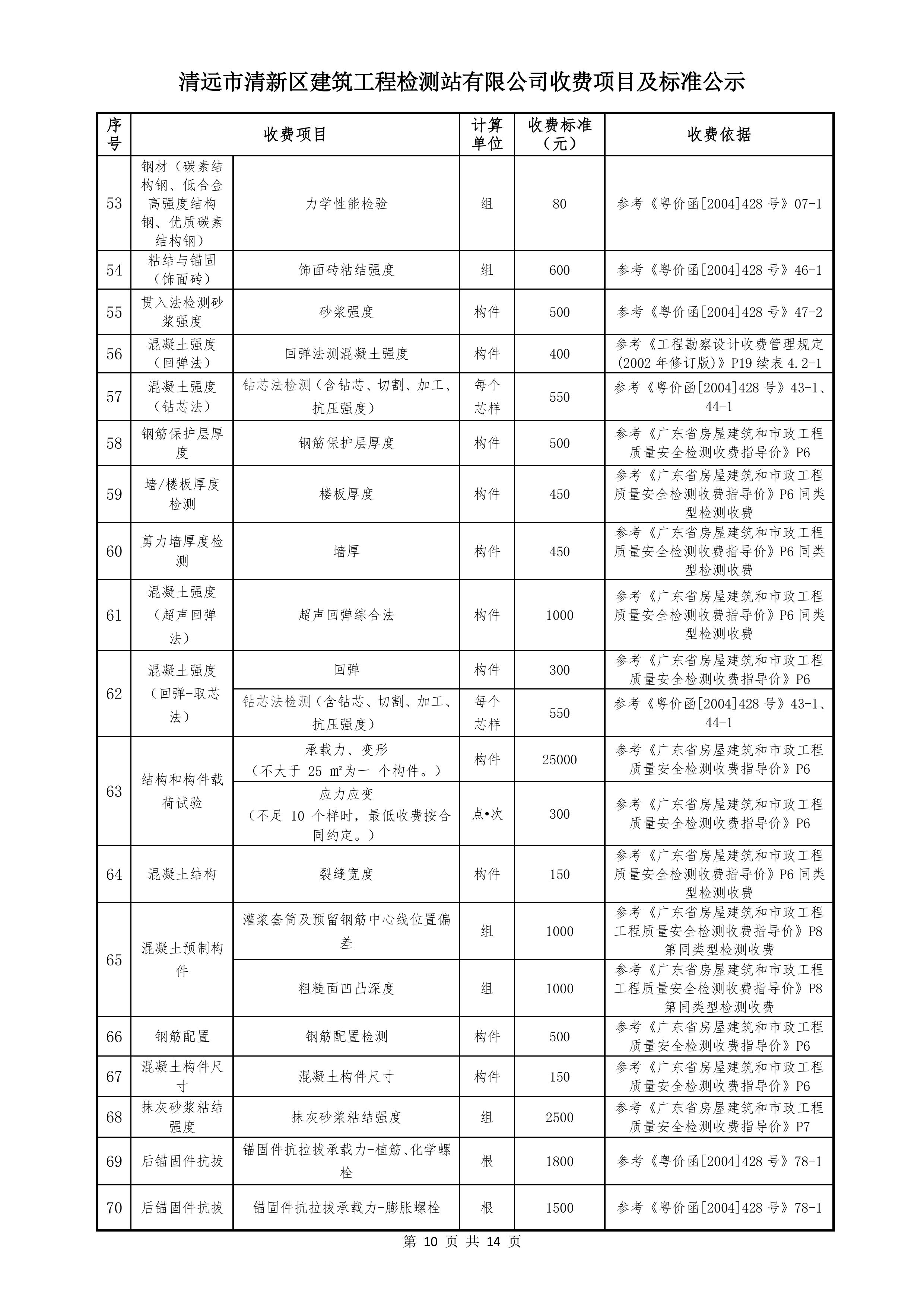 清遠(yuǎn)市清新區(qū)建筑工程檢測站有限公司收費標(biāo)準(zhǔn)2025122