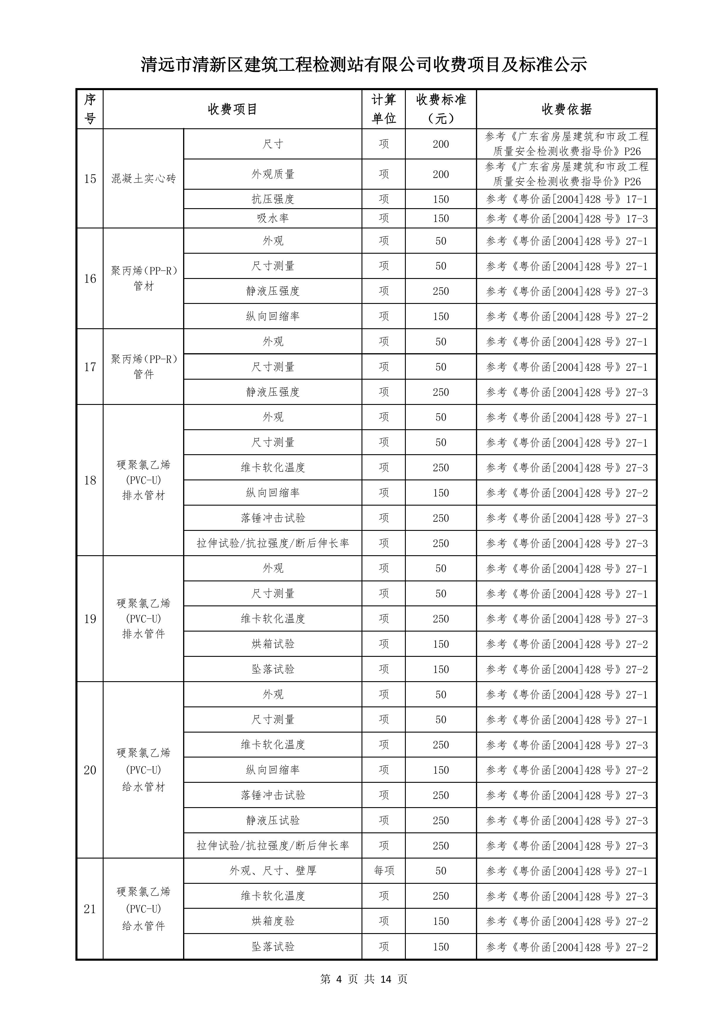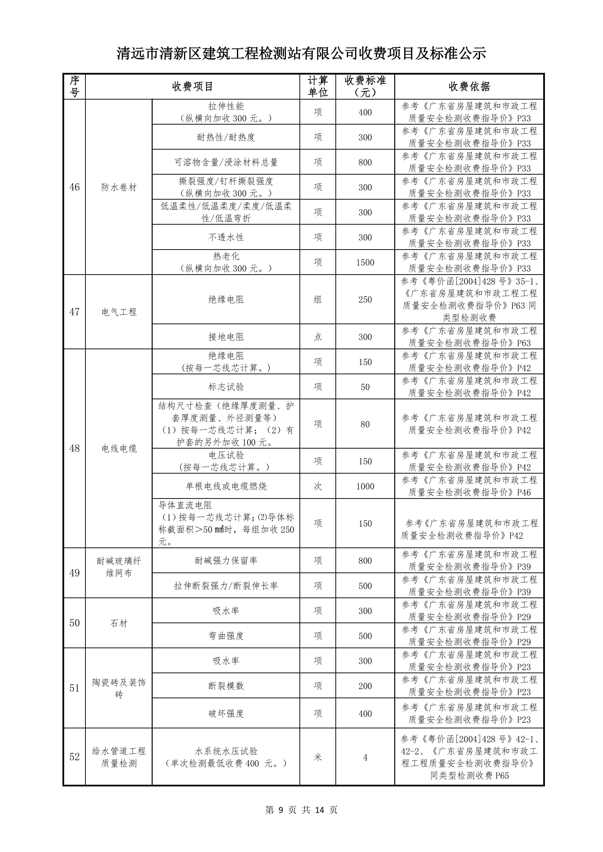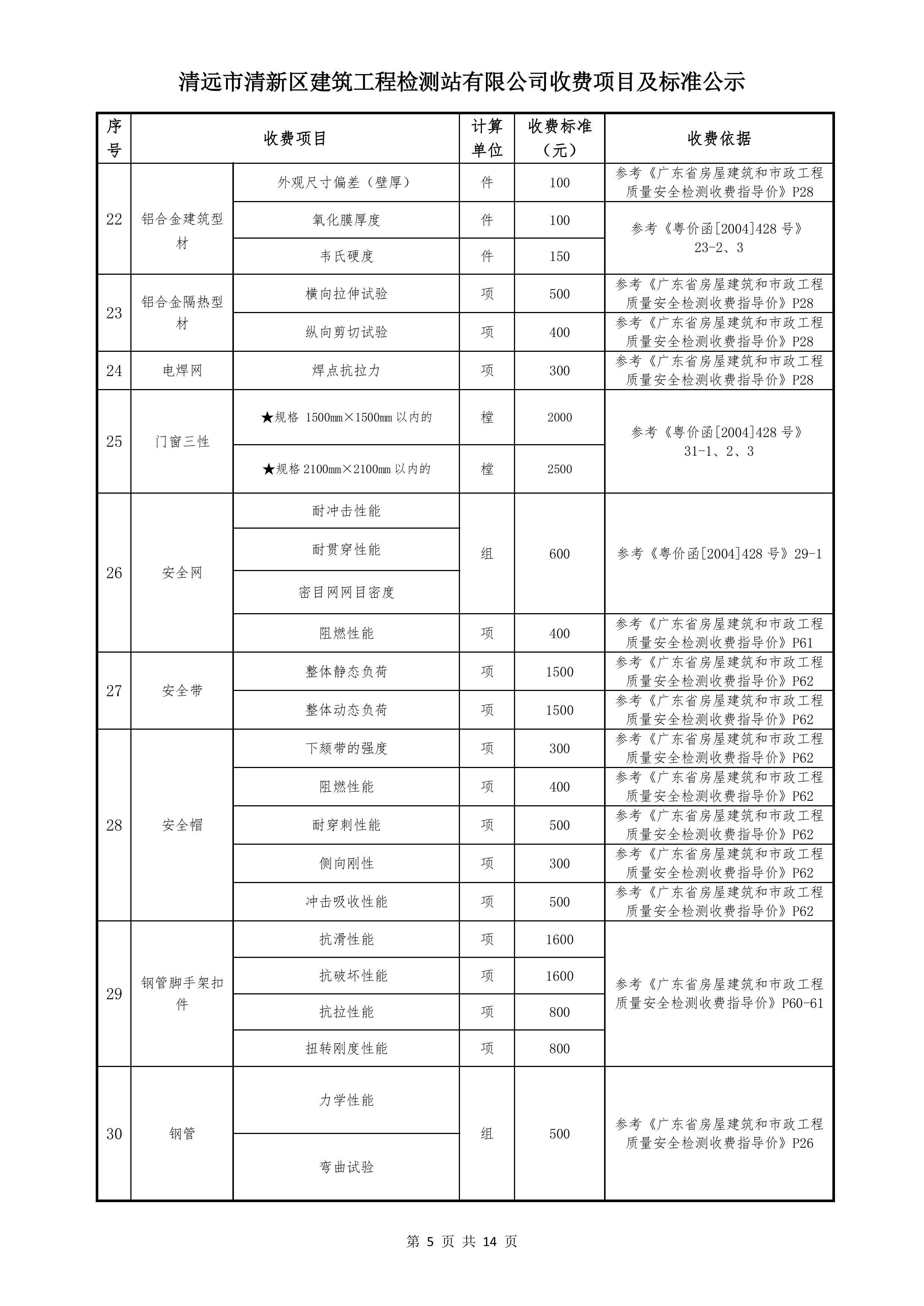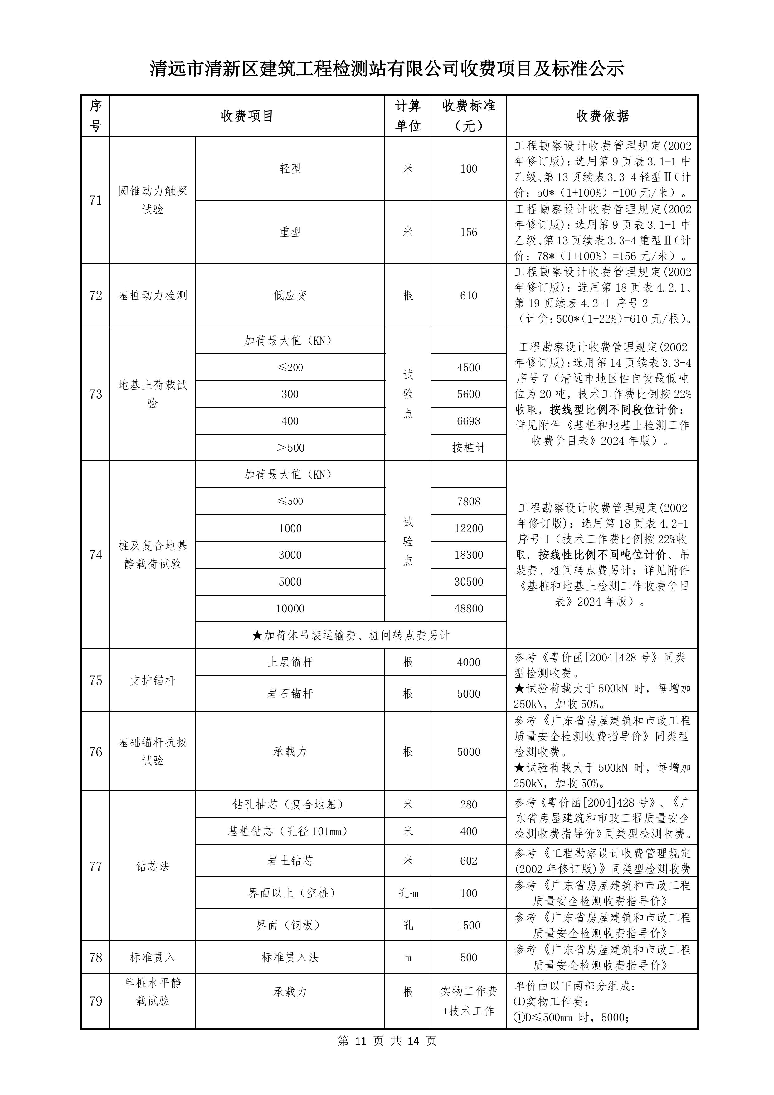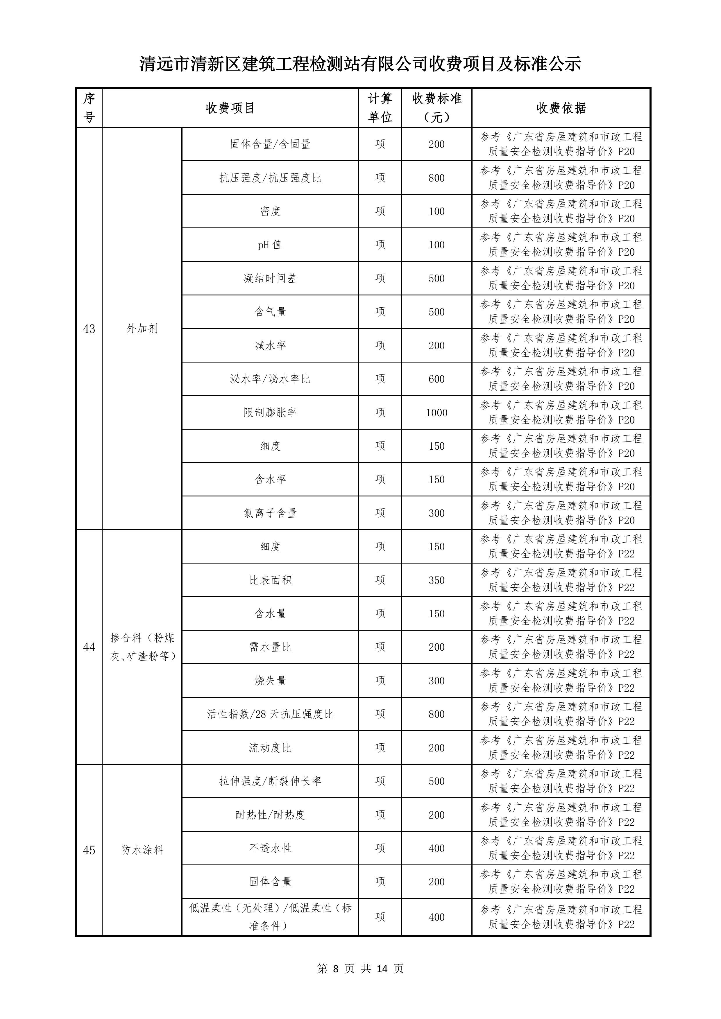 清遠(yuǎn)市清新區(qū)建筑工程檢測站有限公司收費標(biāo)準(zhǔn)2025122